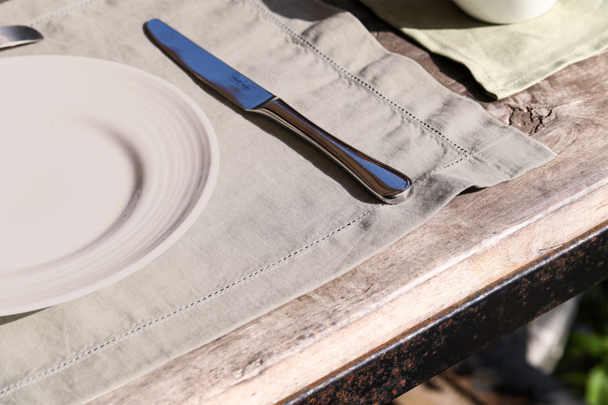 Linendo Linen Hemstitch Placemats 14x19 Inch Natural