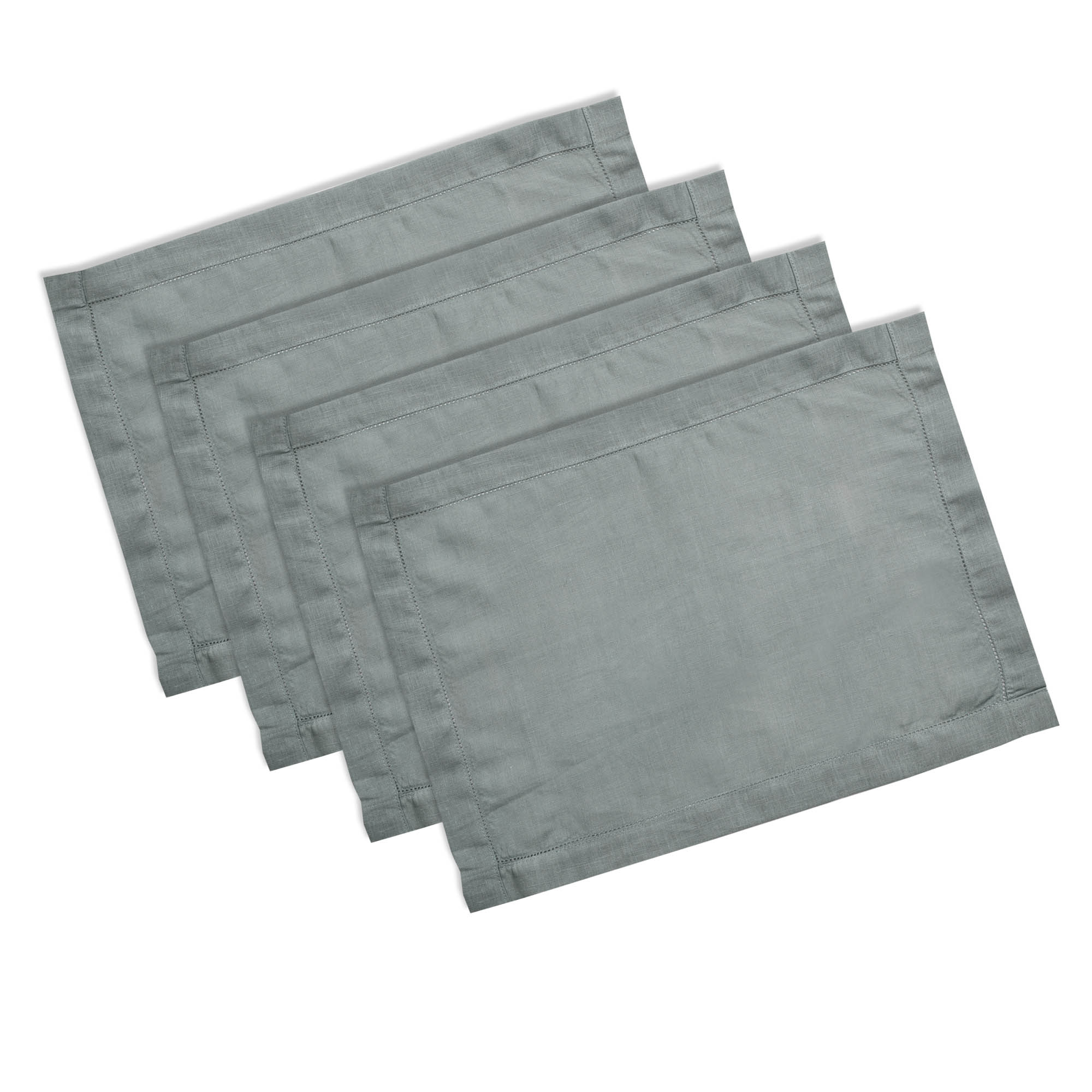 linendo Linen Hemstitch Placemats 14x19 Inch Teal