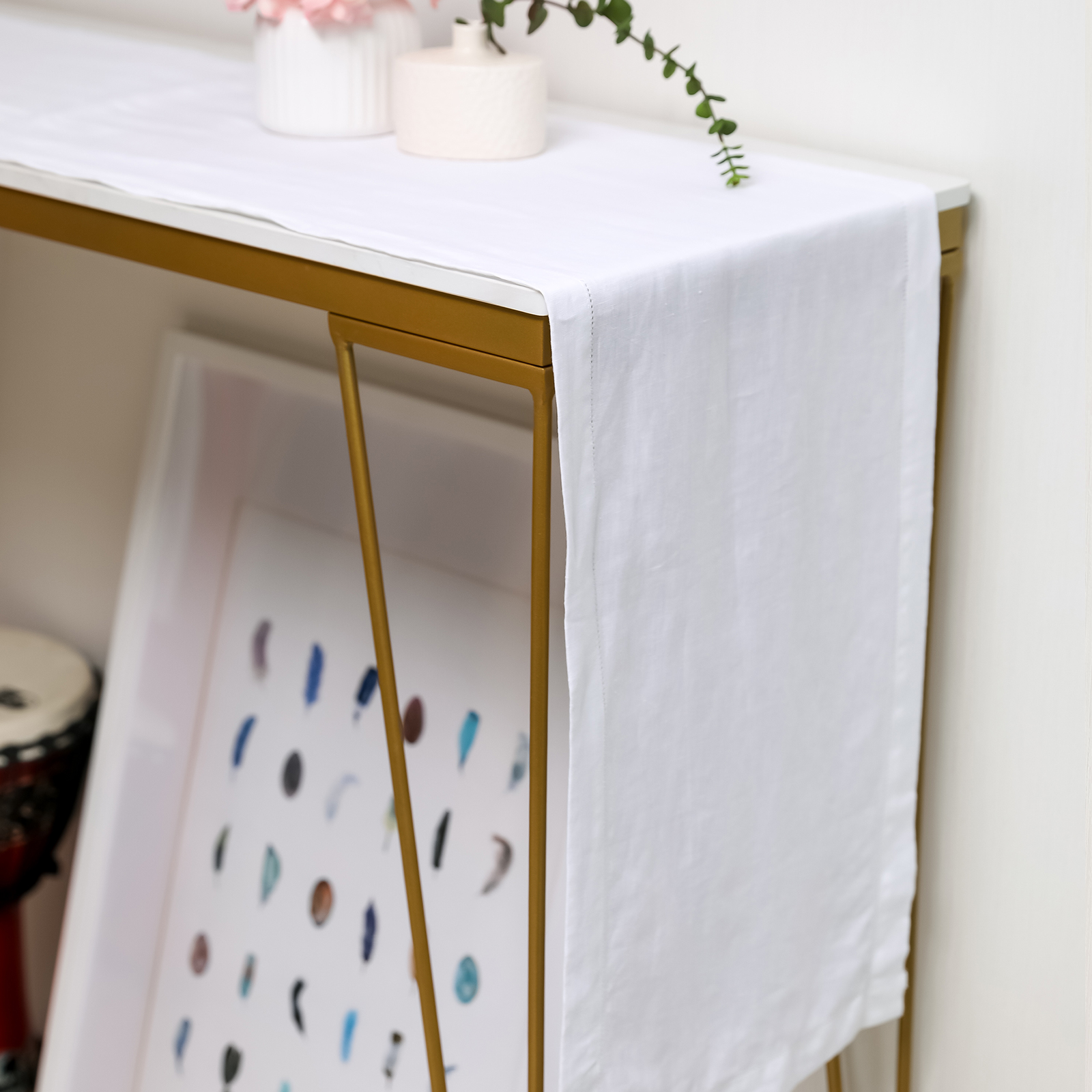 Linendo Hemstitch Linen Table Runner 14x72 Inches Long - White