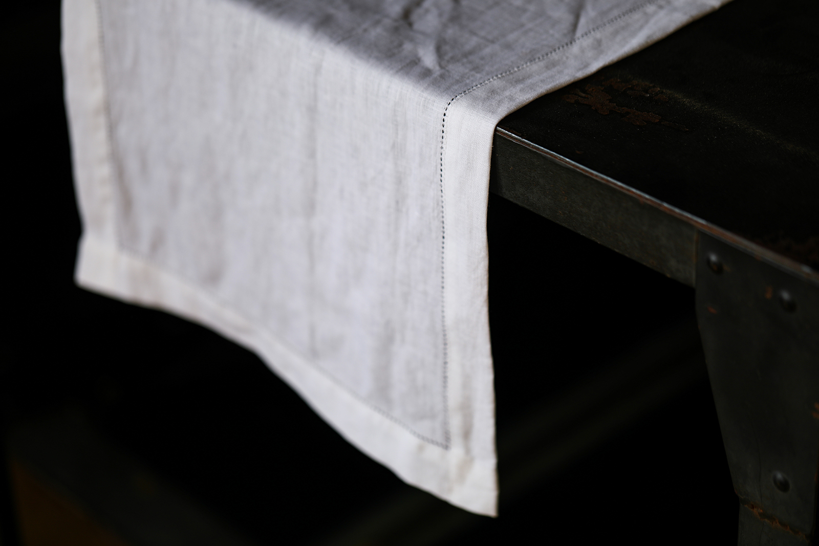 Linendo Hemstitch Linen Table Runner 14x90 Inches Long - White